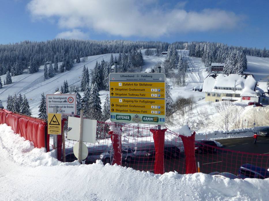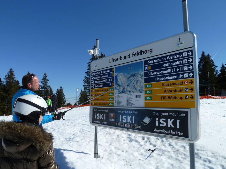 Dank flächendeckender Beschilderung findet man sich am Feldberg sehr gut zurecht. Alle Verbindungen im Skigebiet, Lifte, Orte und Abfahrten sind ausgeschildert. Auf den Wegweisern findet man auch Informationen zur Öffnung der Lifte und Pisten, zu sanitären Anlagen und Restaurants. Sogar Bushaltestellen, Schirmbars und Parkplätze sind ausgeschildert.