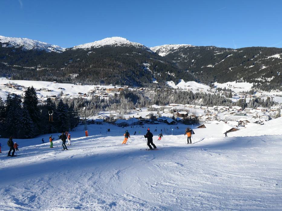 In Riezlern an der Talstation der Kanzelwandbahn (Kleinwalsertal) üben Anfänger im Übungsareal die ersten Schwünge. Skischulen sowie drei Schlepplifte mit leichten Pisten ermöglichen einen guten Start. Im Skigebiet sind einige leichte Pisten verteilt. Beide Talabfahrten sind mittelschwer.