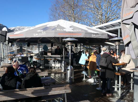 Die Schirmbar bietet täglich Après-Ski oft auch mit DJs und Partys.