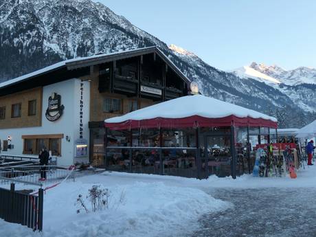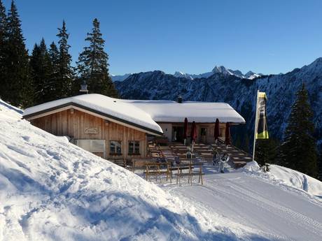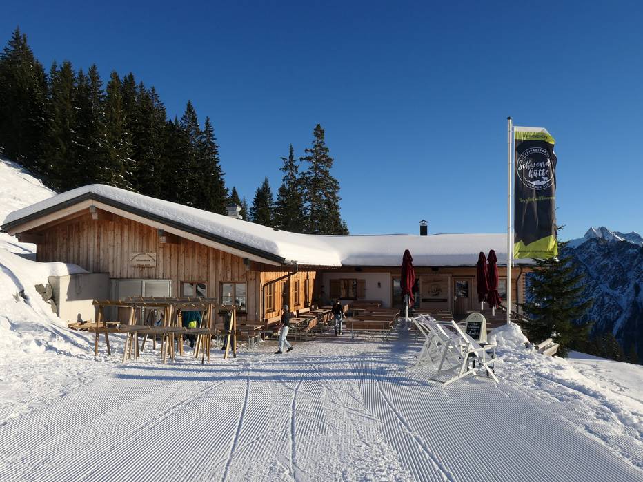 Einkehren in Österreich oder Deutschland – im grenzüberschreitenden Skigebiet hat man die Wahl. Mit der Obere Alpe Bierenwang, der Schwendhütte (s’ Urbar) und dem Adlerhorst verwöhnen urige Berghütten. An den Mittel- und Bergstationen gibt es große SB-Restaurants mit großen Sonnenterrassen. An der Talstation der Fellhornbahn warten Gaststätten.