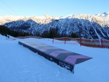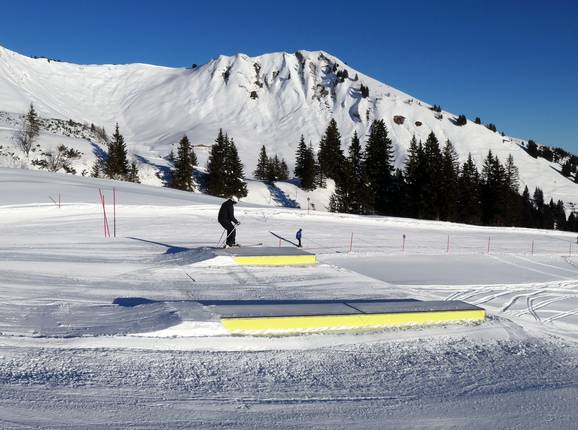 Der Funpark am Fellhorn bietet leichte und mittlere Kickerlines sowie zahlreiche Obstacles.
