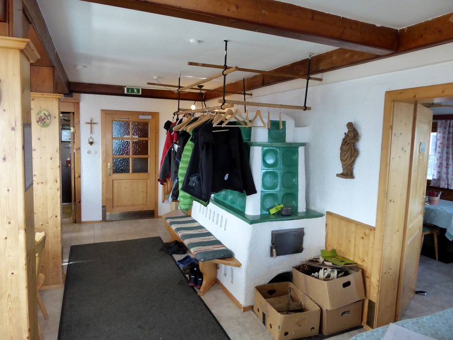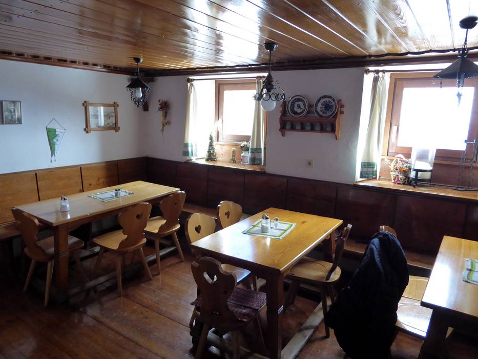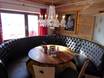 Die urige und gemütliche Hütte bietet eine Sonnenterrasse mit schönem Panoramablick. Bei kaltem Wetter wärmt der Kachelofen in der Stube. Es werden regionale Schmankerl angeboten.