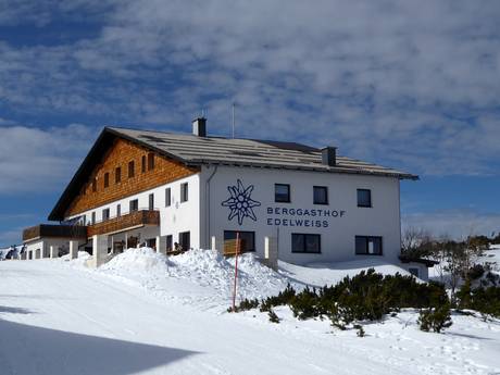 Der Berggasthof Edelweiss bietet eine gehobene, internationale Küche. Der Chef steht noch selbst am Herd und es wird mit besten Zutaten frisch gekocht. Eine große Weinauswahl rundet das Angebot ab. In den neu renovierten Stuben oder auf der großen Sonnenterrasse kann man die hervorragende Küche genießen.