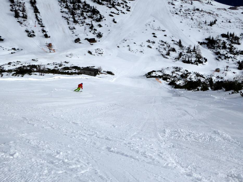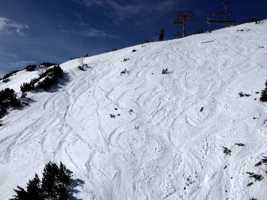 Für Könner bietet der Feuerkogel eine herausfordernde 6 km lange und unpräparierte Skiroute ins Tal. Oben im Skigebiet gibt es zwei schwere Abfahrten und Platz für einen Abstecher in den Tiefschnee.