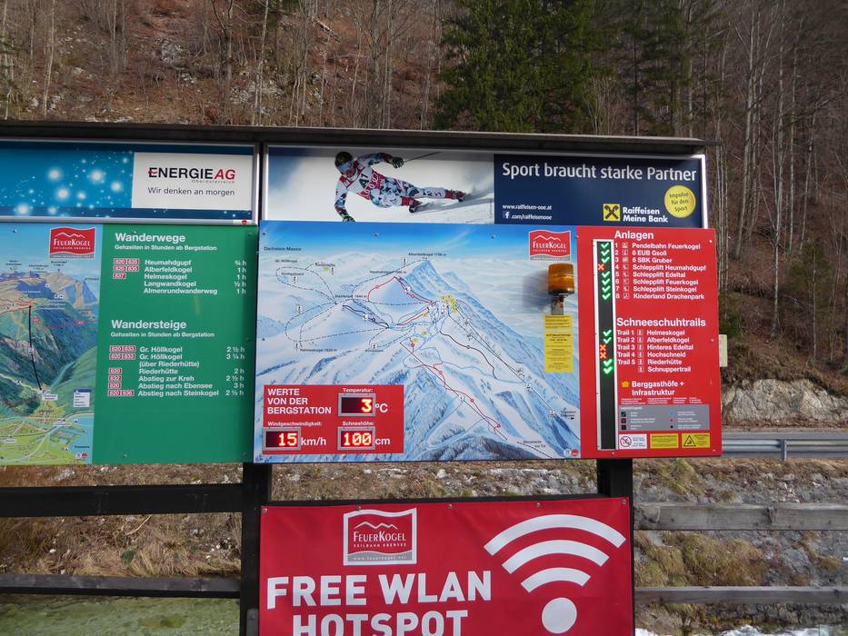 Im Skigebiet Feuerkogel gibt es einen Pistenplan mit Betriebsinformationen vor dem Talstationsgebäude und an der Bergstation. Sämtliche Pisten sind groß, gut sichtbar und eindeutig ausgeschildert. Man findet sich gut im Skigebiet zurecht.