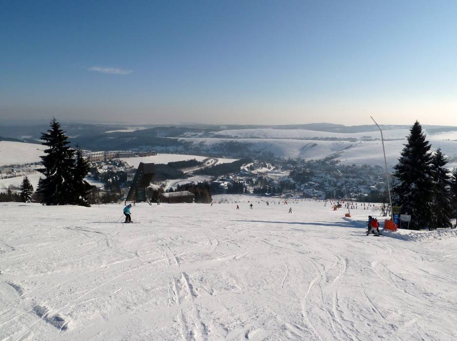 Leichte Pisten ziehen sich vom Berg bis ins Tal. An den Schleppliften am Kleinen Fichelberg und am Schlepplift Himmelsleiter sind die besten Abfahrten für die Anfänger. Im Ort Oberwiesenthal steht ein Übungsgelände zur Verfügung.
