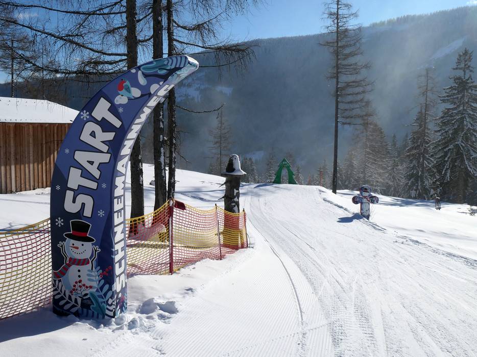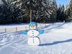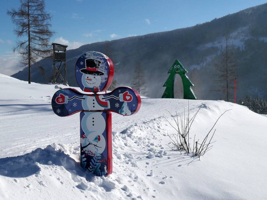 Die Spaßpiste Schneemannweg bringt mit freundlichen Winterfiguren Abwechslung und Freude. Sie liegt bei der Sesselbahn Großberg.