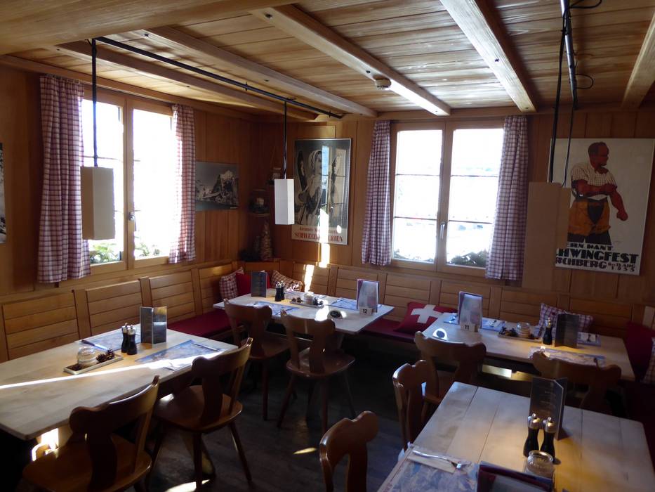 Das Berghaus Bort bietet saisonale und regionale Spezialitäten. Der Blick von der Sonnenterrasse auf die Berge der Jungfrau Region ist atemberaubend.