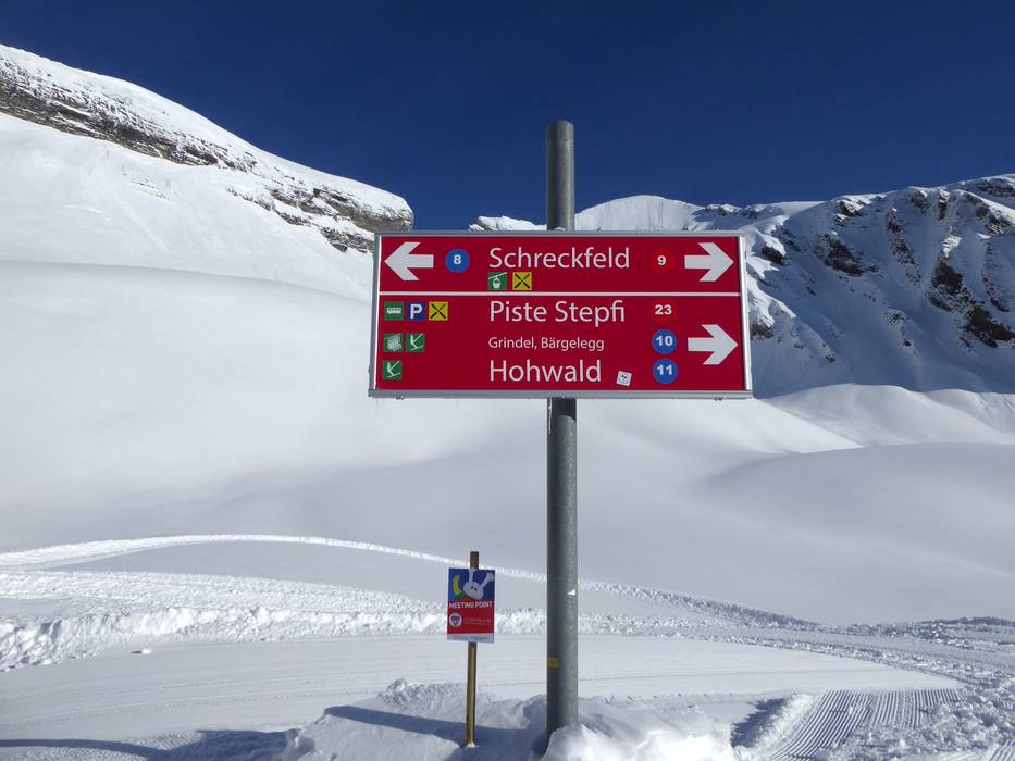 Orientierung (Pistenplan, Informationstafeln, Ausschilderung) und Sicherheit im Skigebiet First – Grindelwald