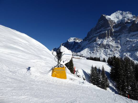 Knapp die Hälfte des Skigebiets First kann mit leistungsfähigen Schneekanonen beschneit werden. Durch die Höhenlage ist das Skigebiet sehr schneesicher. Die oberen Pisten liegen den ganzen Tag in der Sonne.