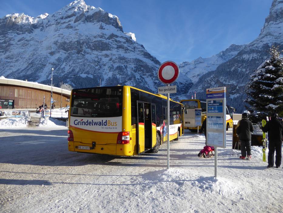 - Postautos und Skibusse verkehren in Grindelwald im 15-Minuten Takt. Die Berner Oberland-Bahn (BOB) verbindet Grindelwald von Interlaken Ost aus.