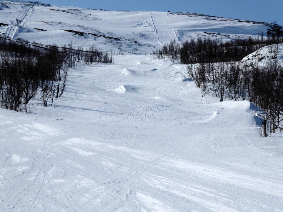 Das Skigebiet bietet den Björkliden Trouble Park und einige kleine Hindernisse am Rakkasliften.