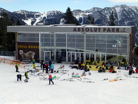 Am unteren Ende des Absolut Parks ist das Chill House der ideale Treffpunkt für alle Freestyler. Neben Chill Areas werden eine Boulderwand und die weltweit erste Indoor Skate Mini Ramp im Skigebiet geboten.