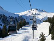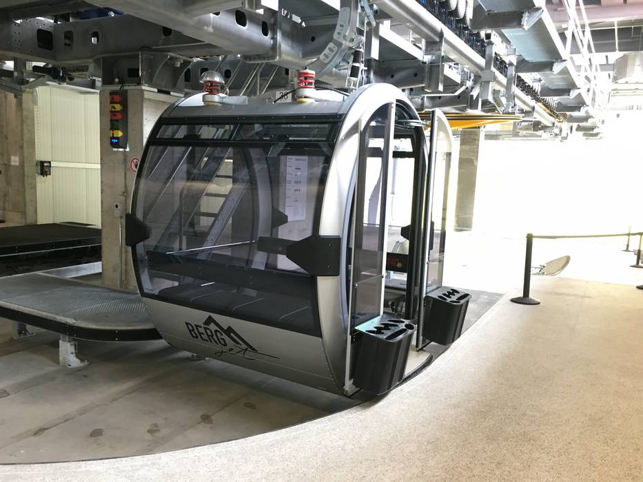 Die komfortablen Kabinen der neuen 8er-Gondelbahn BergJet bieten dank der großen Fensterflächen Panorama-Rundsicht. Die Breite der Sitze ist deutlich angewachsen. Die Fahrt in den rollstuhltauglichen Gondeln ist dank modernstem Federungs-System laufruhig und bequem.