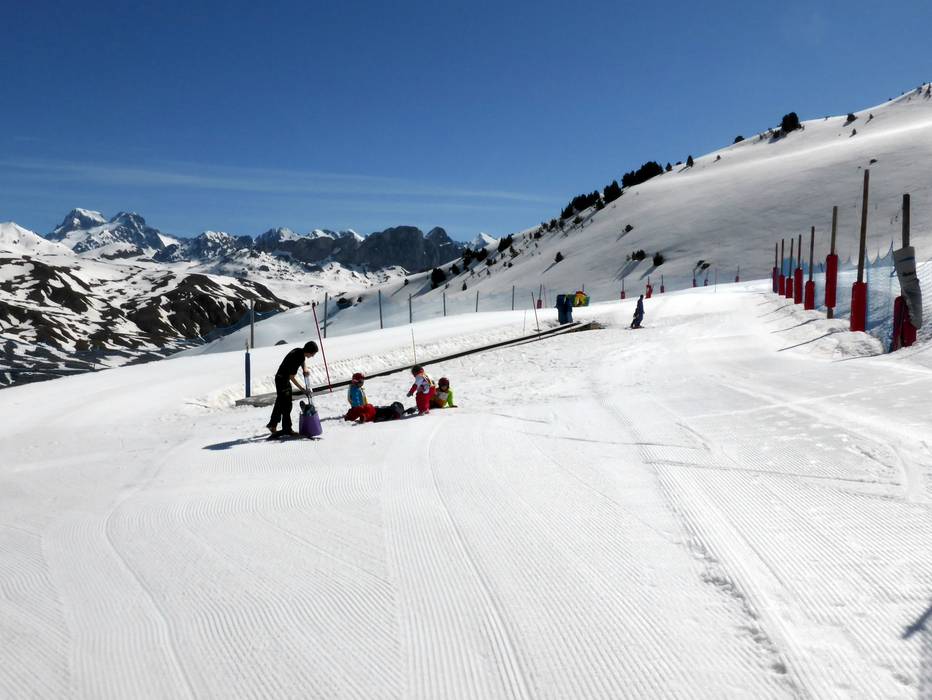 Der Schneegarten liegt direkt am Parkplatz in Anayet. Bis zu 100 Kinder ab 2,5 Jahren lernen hier spielerisch das Skifahren. Der Bereich ist insgesamt 9000 m2 groß mit mehreren Förderbändern und Gebäuden für Kinder.