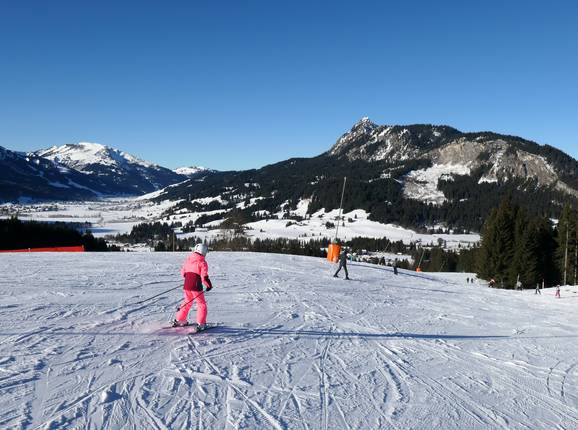 Anfänger machen ihre ersten Schritte an der Märchenwiese im Tal. Das Anfängergelände befindet sich gegenüber der Schachenlifte am tiefsten Punkt des Skigebiets. Skischulen unterrichten hier auch. Der Doppelschlepplift Schachen erschließt zwei weitere leichte Pisten. Im oberen Teil nördlich des Füssener Jöchles an der 6er-Sesselbahn sind nur mittelschwere, aber breite Pisten zu finden. Die Talabfahrt vom Füssener Jöchle nach Grän hinab ist für totale Anfänger ungeeignet.