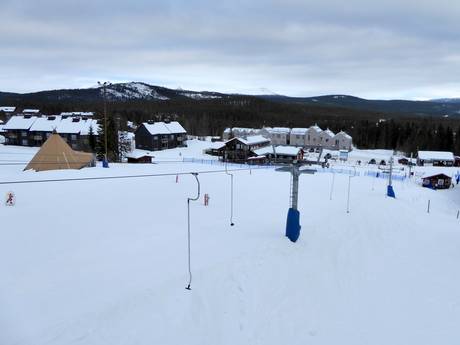 Das Kinderland Lo-Landet befindet sich am Fuße des Funäsdalsberget in der Nähe des Kåvan Gästcenters. Ein Tellerlift erschließt eine leichte, kindgerechte Piste mit liebevoll gestalteten Figuren. Unterwegs kann man auch bequem auf halber Strecke aussteigen oder bis ganz nach oben fahren und anschließend auf einer sanften Abfahrt durch den Wald zurück zur Talstation gleiten.