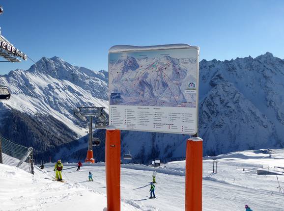 Orientierung (Pistenplan, Informationstafeln, Ausschilderung) und Sicherheit im Skigebiet Gargellen