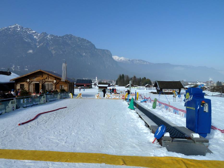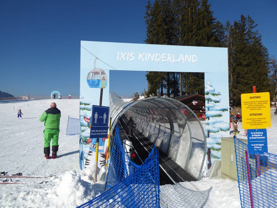 Im Kinderland am Hausberg stehen verschiedene Lernmaterialien und ein idealer Hang zur Verfügung. Eine "Tribüne" für die Eltern schafft tolle Voraussetzungen für die jüngeren Wintersportler.