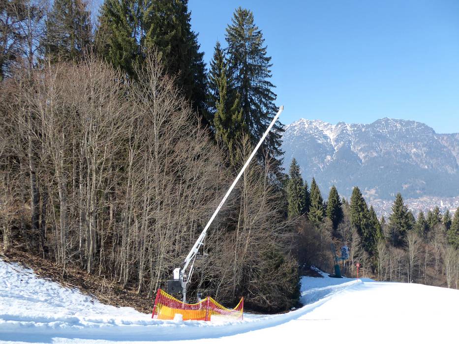 Die Talabfahrten können komplett beschneit werden. Die Pisten am Hausberg, Kreuzjoch und bis zum Kreuzeck sind ebenfalls beschneit. Die Hochalm, Bernadeinlift und Osterfelderkopf sind auf Naturschnee angewiesen, liegen jedoch recht hoch, so dass sich der Naturschnee gut hält.