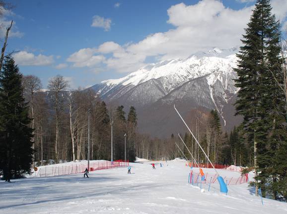 Das Gazprom Mountain Resort bietet ausschließlich Waldabfahrten, diese aber über das gesamte Spektrum von leicht bis schwer.