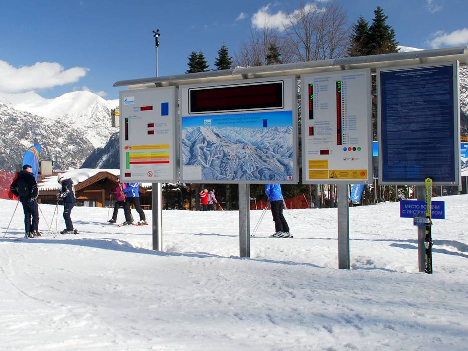 Esto-Sadok (Эсто-Садок) (2,1 km), Krasnaja Poljana (Красная Поляна) (7 km) Orte am Skigebiet (Entfernung vom Ortszentrum): Esto-Sadok (Эсто-Садок) (2,1 km), Krasnaja Poljana (Красная Поляна) (7 km)