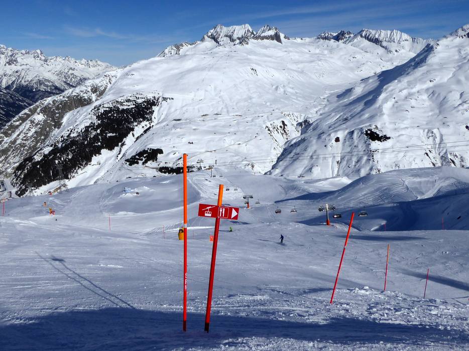 Die Pisten sind sehr gut ausgeschildert und man findet sich leicht zurecht. An der Talstation findet man tagesaktuelle Informationen und Leuchttafeln. Die Pisten sind mit signalfarbenen Abgrenzungen im Detail markiert. Somit findet man sich auch bei Nebel im hochalpinen Gelände zurecht.