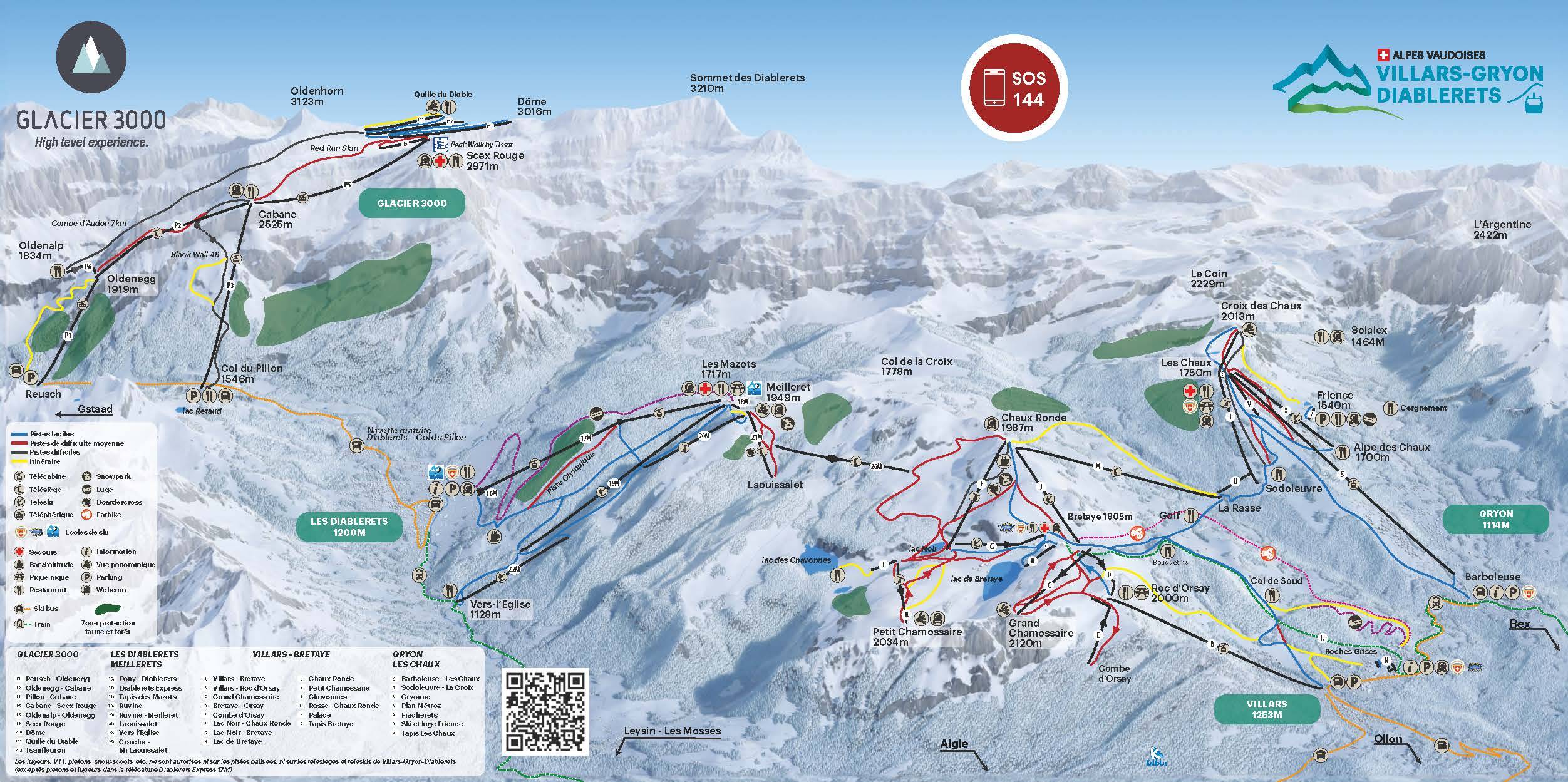 Pistenplan Villars-Gryon-Les Diablerets Saison 2024/2025