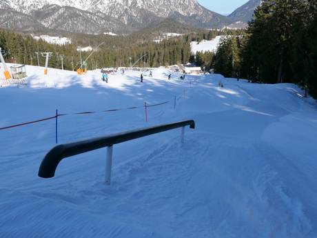 Freestyler können sich über einen guten Snowpark freuen. Abhängig vom Aufbaustatus bietet er einen Easy Park, Medium und Pro Kicker sowie Raillines.