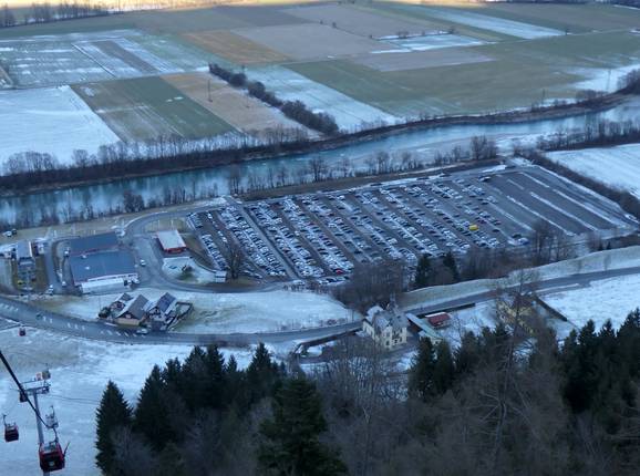 Die Anfahrt von der A10 Tauernautobahn ist schnell und ohne nennenswerte Steigung, da die Gondelbahn unten im Drautal startet. Der große Parkplatz befindet sich direkt an der Talstation.