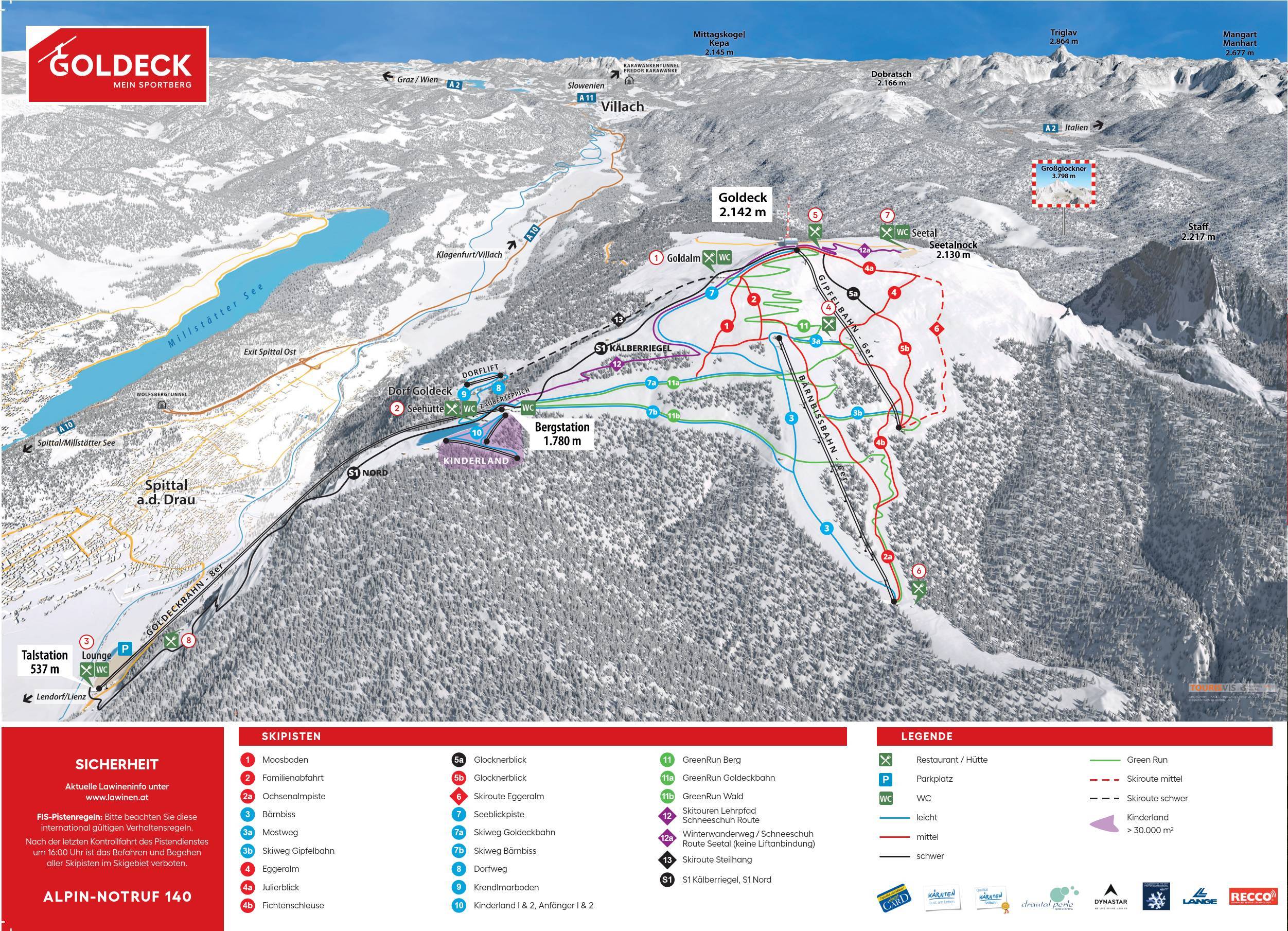 Orientierung (Pistenplan, Informationstafeln, Ausschilderung) und Sicherheit im Skigebiet Goldeck – Spittal an der Drau