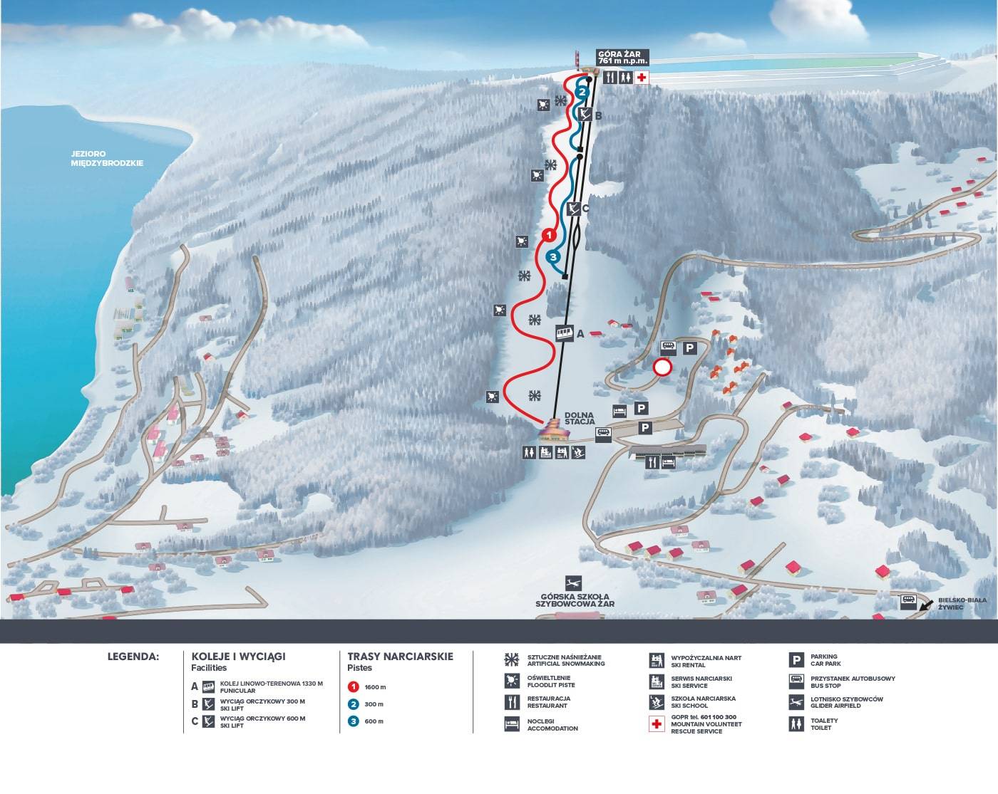 Pistenplan Góra Żar – Miedzybrodzie Zywieckie