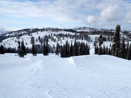 Die Snowparks im Grand Targhee Ski Resort sind zwar nicht so groß oder vielfältig wie in einigen anderen großen Skigebieten, aber sie bieten dennoch eine gute Auswahl an Features für Snowboarder und Freestyler.