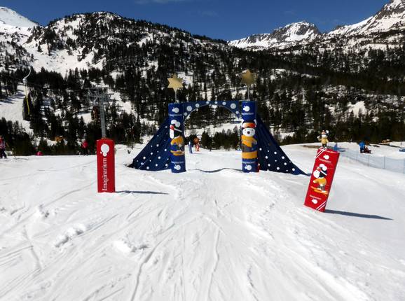 Das Kinderland liegt an der Bergstation der Gondelbahn von Soldeu und bietet Förderbänder und Übungslifte.
