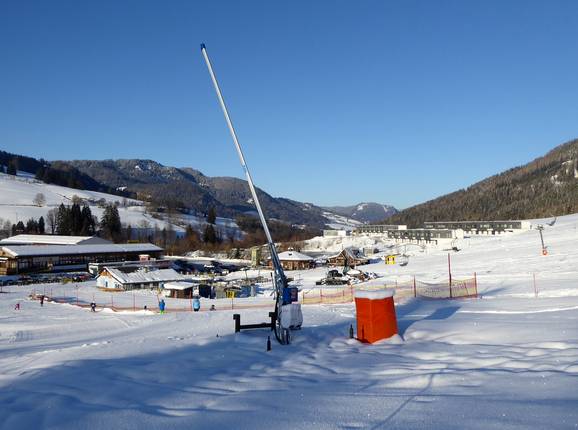 Der Großteil der Pisten kann mit einer verstärkten Beschneiungsanlage umfassend beschneit werden. Auch das Übungsgelände im Tal hat eine Beschneiung. Das Skigebiet liegt komplett über 1000 m. Somit ist die Grebenzen sehr schneesicher.