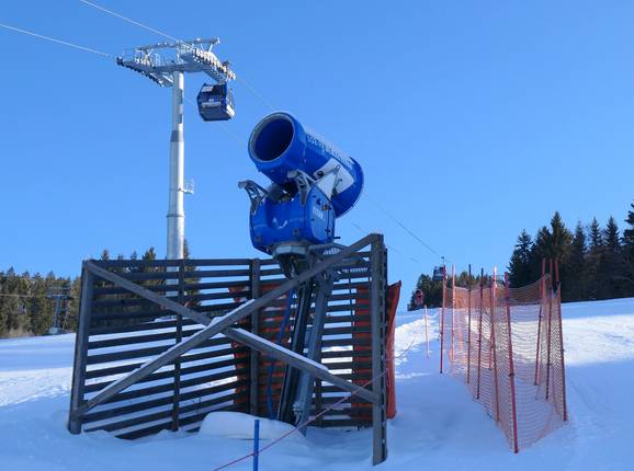 Der Großteil der Pisten kann mit einer verstärkten Beschneiungsanlage beschneit werden. Auch das Übungsgelände im Tal hat eine Beschneiung. Das Skigebiet liegt komplett über 1.000 m. Somit sind die GrebenzenHöhen sehr schneesicher.