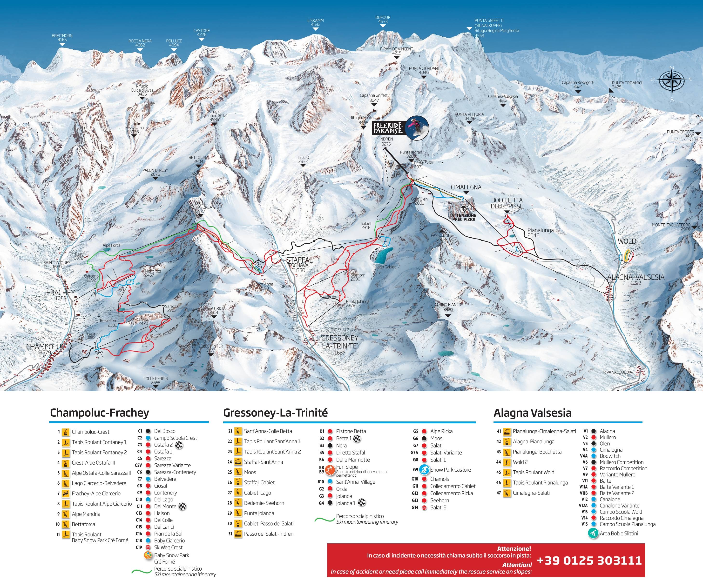 Pistenplan Gressoney-Saint-Jean – Weissmatten Saison 2025/2026