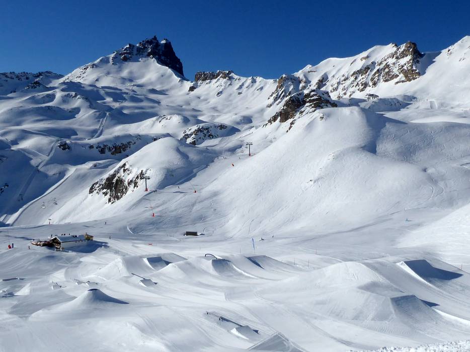 Der Snowpark Grimentz befindet sich im oberen Teil des Skigebiets am Tellerlift Orzival. Man kann an der ersten Kurve des Tellerlifts aussteigen und sofort in den Park starten. Verschiedene Kicker, Boxen, Jibs und Rails aller Schwierigkeitsgrade warten hier auf die Freestyler.