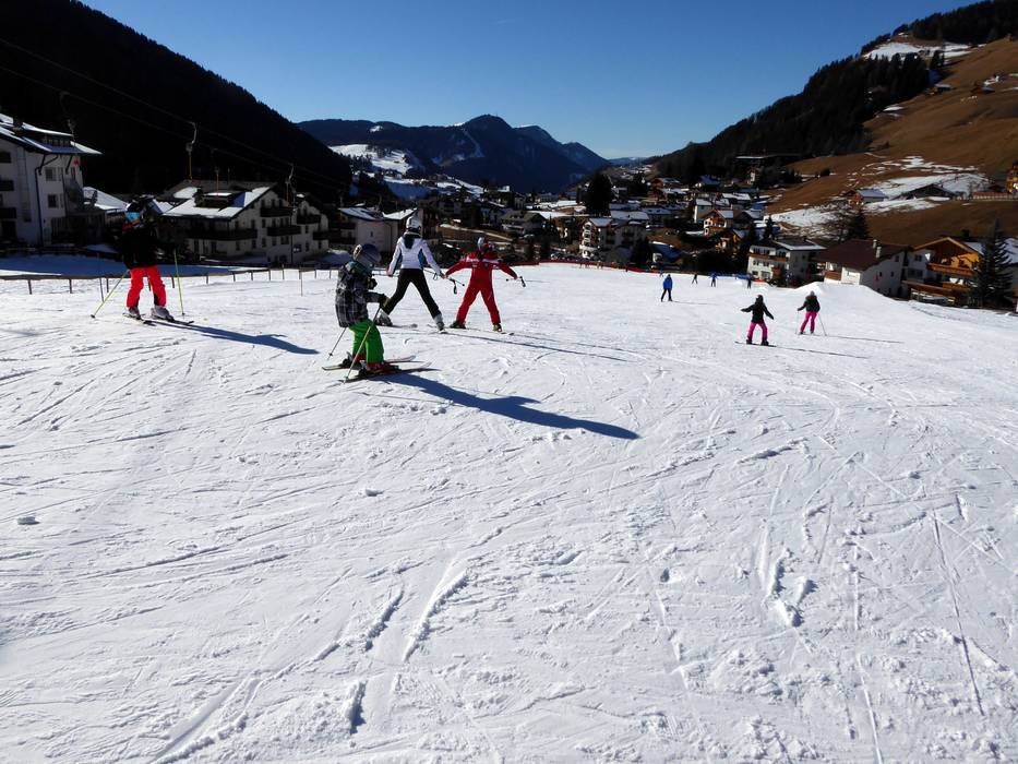 In allen Orten (St. Christina/S. Cristina, St. Ulrich/Ortisei, Wolkenstein/Selva Gardena) und am Monte Pana gibt es Skischulen. Umfangreiche Übungslifte gibt es in Wolkenstein und am Monte Pana oberhalb von St. Christina. Zwei Übungslifte in St. Ulrich sowie ein Übungslift in St. Christina ergänzen das Angebot. Am Plan de Gralba gibt es einige leichte und breite Pisten. Wenn man mit den Gondelbahnen aufwärts fährt, müssen sofort mittelschwere Abfahrten überwunden werden. Somit beschränkt sich das Anfängerangebot auf die Übungslifte im Tal und am Plan de Gralba.