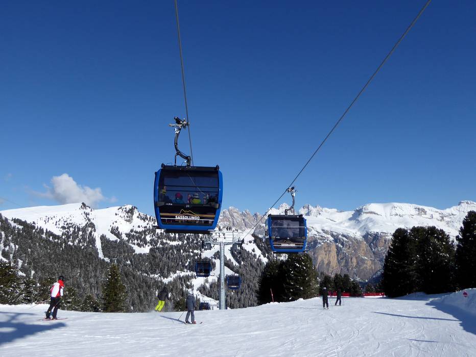 Umlaufbahn/Gondelbahn im Skigebiet Gröden (Val Gardena)