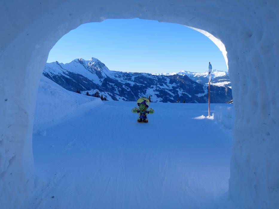 Der Schneetunnel mit Hexenfiguren liegt bei der Familienabfahrt Kristall.