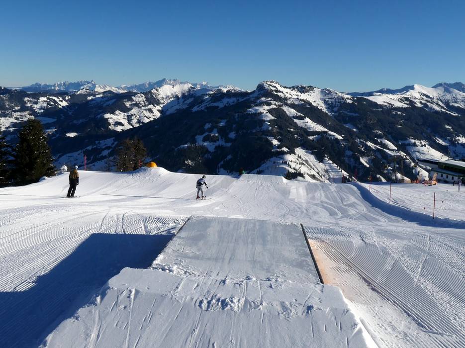 Der Snowpark beginnt an der Bergstation der Sonnenbahn. Er bietet Kicker, Boxen und zahlreiche weitere Hindernisse.