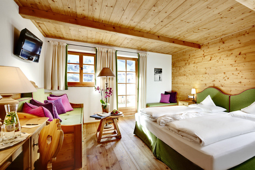 Das Haus ist mit viel Liebe zum Detail und mit viel Holz ausgestattet. Die Zimmer und Suiten duften nach Zirbenholz und man hat einen herrlichen Blick auf die umliegenden Berge. In den edlen Zimmern kann man sich rundherum wohlfühlen.