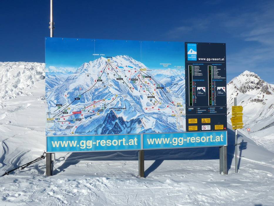 Orientierung (Pistenplan, Informationstafeln, Ausschilderung) und Sicherheit im Skigebiet Großglockner Resort Kals-Matrei Pistenplan und Übersichtskarten