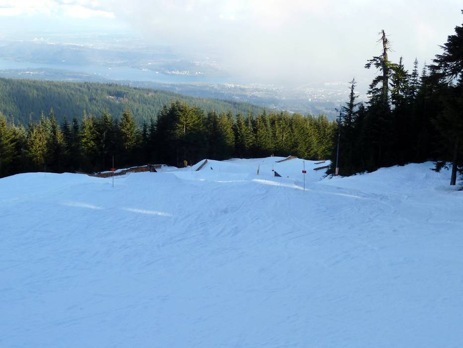 Der Snowpark befindet sich direkt entlang der Piste The Cut und bietet von kleinen Jumps bis zu Mega Jumps eine große Auswahl. Bei jedem Sprung hat man das Panorama von Vancouver und dem Pazifik vor sich.
