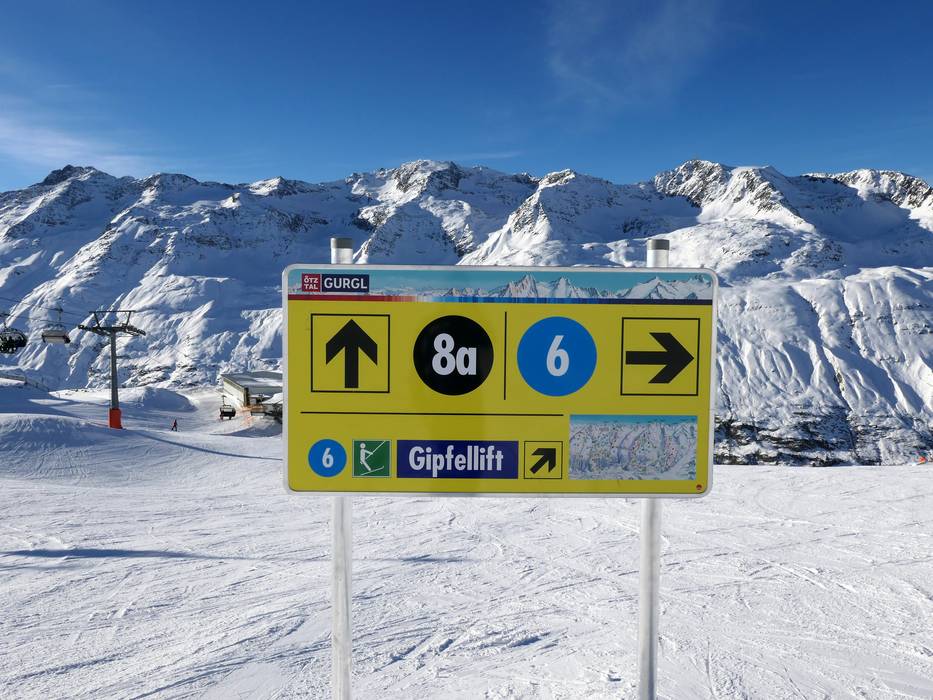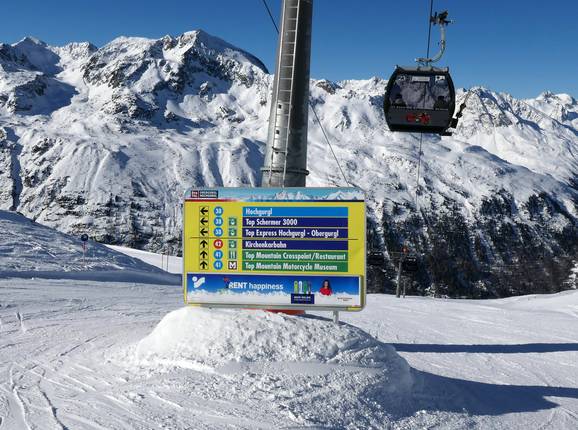 Orientierung (Pistenplan, Informationstafeln, Ausschilderung) und Sicherheit im Skigebiet Gurgl – Obergurgl-Hochgurgl