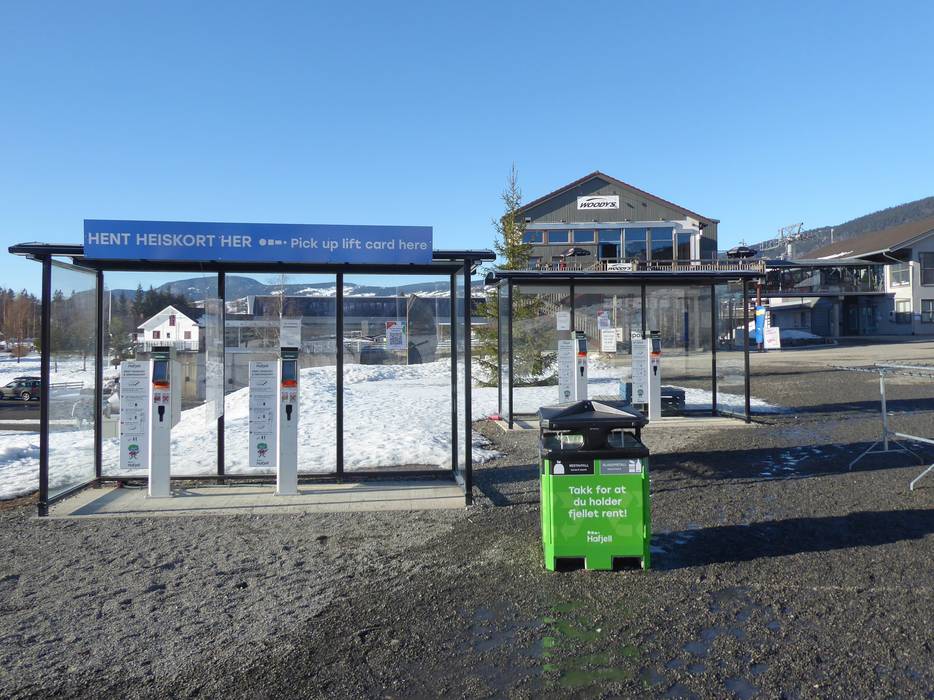 Der Bahnhof Hunderfossen liegt rund 5 km vom Skigebiet Hafjell entfernt. - Skibusse