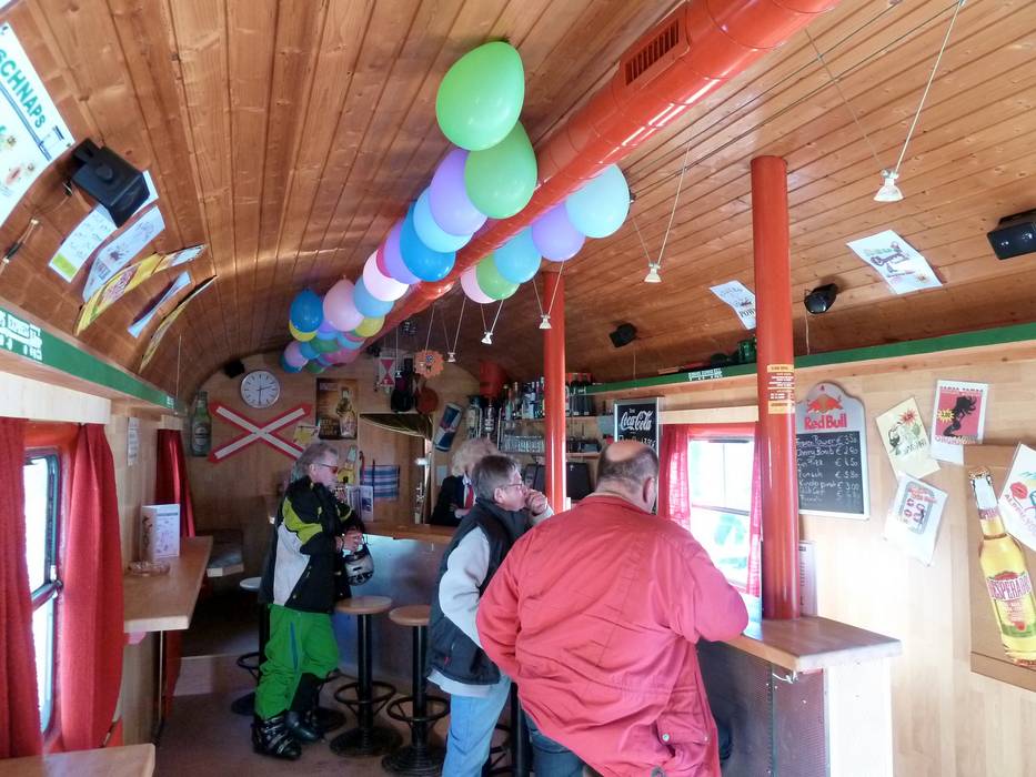Der umgebaute Eisenbahnwaggon eignet sich perfekt für den Tagesabschluss. Es gibt Musik, gute Laune und ein außergewöhnliches Ambiente.