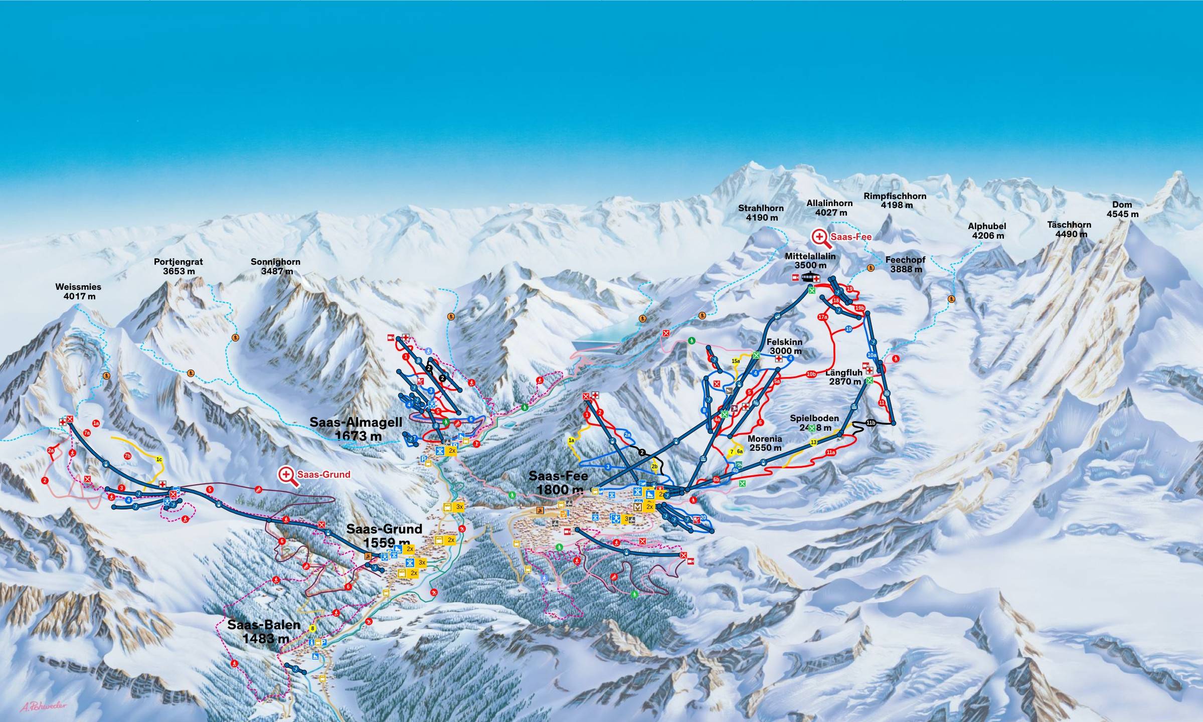 Pistenplan Saas-Almagell (Saastal) Saison 2025/2026
