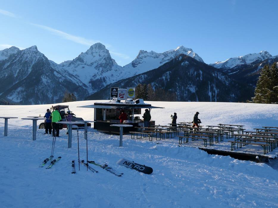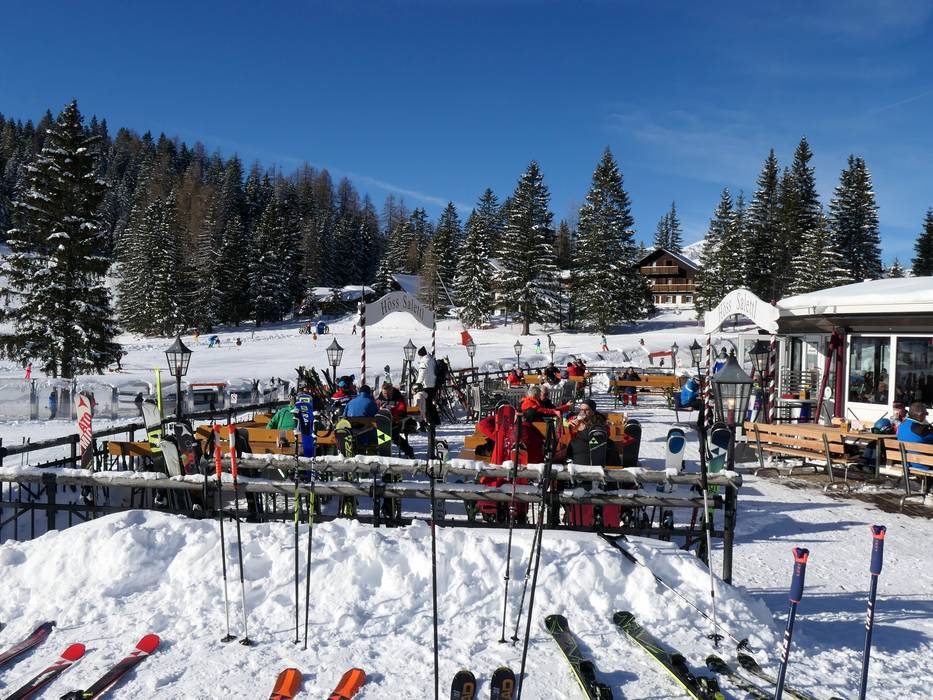 Urige Hütte mit Sonnenterrasse und Après-Ski. Hier gibt es regionale Kost und immer gute Stimmung.